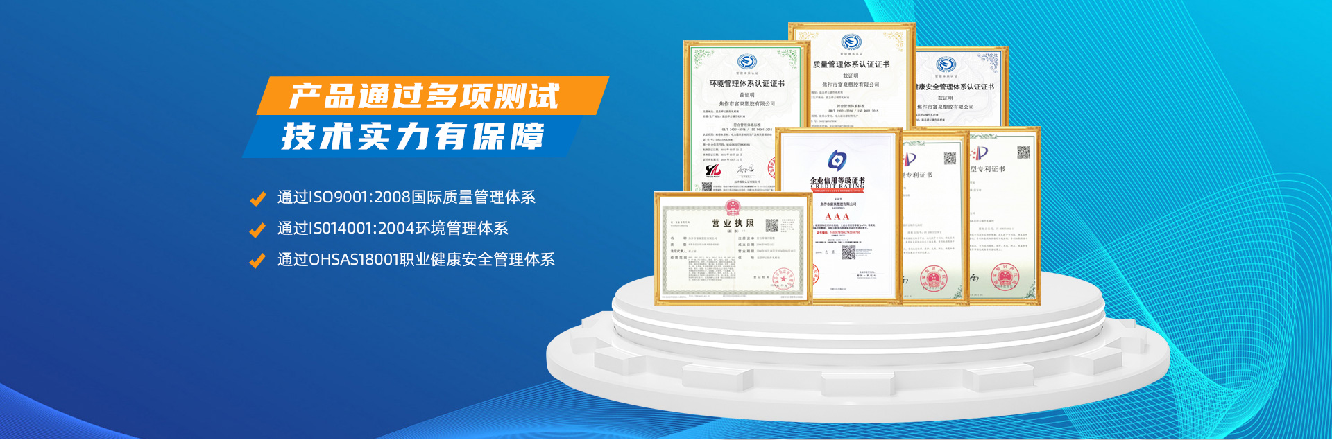 - 焦作市富泉塑膠有限公司,創(chuàng)立于1995年,是一家集研發(fā)、設計、生產、銷售為一體的大型管材企業(yè)。公司位于太極故里、黃河之濱一一河南焦作溫縣。公司占地128畝,現(xiàn)有職工210余人,其中具有中技術職稱的19人。生產、檢驗設備58臺(套),包括PVC實壁管生產線11套、PE實壁管生產線12套、HDPE雙壁波紋管生產線6套、PVC雙壁波紋管生產線5套,檢驗設備14臺(套)。主要產品有:Φ20mm-630mm、各種壓力規(guī)格的PVCU、PVC-M、PE給水管材,PVC-U節(jié)水灌溉管材,HDPE燃氣和礦用管材,DN200-800mm的HDPE、PVC雙壁波紋管及各種噴灌、滴灌工程材料。承接大中型市政供排水、飲水安全及節(jié)水灌溉等工程。 富泉塑膠公司重視產品的質量、安全、環(huán)保和節(jié)能,在同行業(yè)中率先完成了“新華節(jié)水產品認證”,全方面通過ISO9001:2008國際質量管理體系、IS014001:2004環(huán)境管理體系和OHSAS18001職業(yè)健康安全管理體系的一體化導入,并建立起規(guī)范的現(xiàn)代企業(yè)管理體系。公司以“質量”為先導,采用質量跟蹤、多環(huán)節(jié)把關的方法,組建具有行業(yè)水準的企業(yè)技術檢測中心,常年委托水利部節(jié)水灌溉設備檢測中心、河南省產品質量監(jiān)督檢驗院對產品跟蹤檢測,并由中國人民保險公司承保產品質量。公司連續(xù)多年被河南省水利廳確定為“安全飲水設備、節(jié)水灌溉設備”定點生產企業(yè),并獲得“中國名優(yōu)產品”“質量、服務、信譽AAA企業(yè)”“河南省**產品”“河南省水利企業(yè)”“河南省守合同、重信用企業(yè)”等榮譽稱號?! 「蝗苣z公司堅持“用戶為上”的服務理念,長期以來,全方面關注客戶價值,不斷提升服務水平。服務隊伍常年為客戶的產品設計、施工、安裝提供合理的方案和全程細致、周到、**、快捷的技術服務。公司自成立以來,一直堅持以人為本的宗旨,塑造企業(yè)形象,并致力于新產品的開發(fā),憑借雄厚的技術開發(fā)能力,先進的工藝制造流程,嚴格的質量管理保證體系,優(yōu)良的售后服務網(wǎng)絡,已成為河南省大的飲水、灌溉及排水管材設備制造商。產品暢銷全國,而且還以公司雄厚的綜合實力在業(yè)界中占據(jù)著重要的地位。